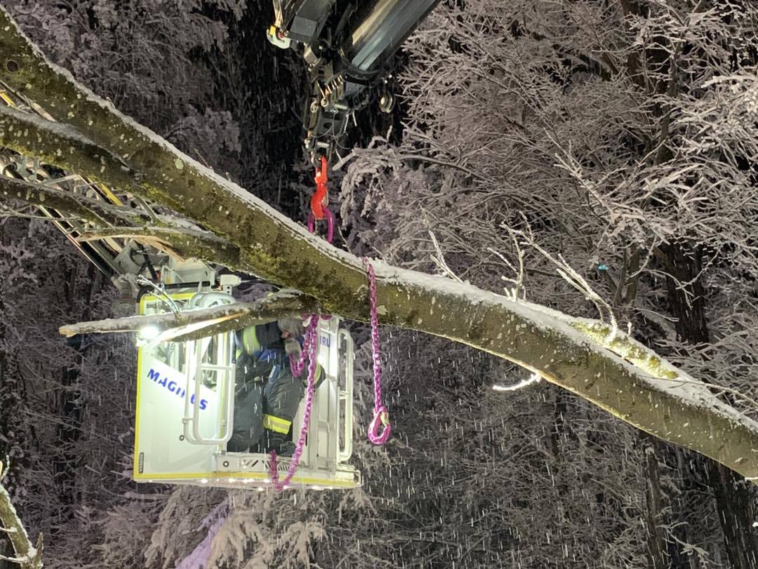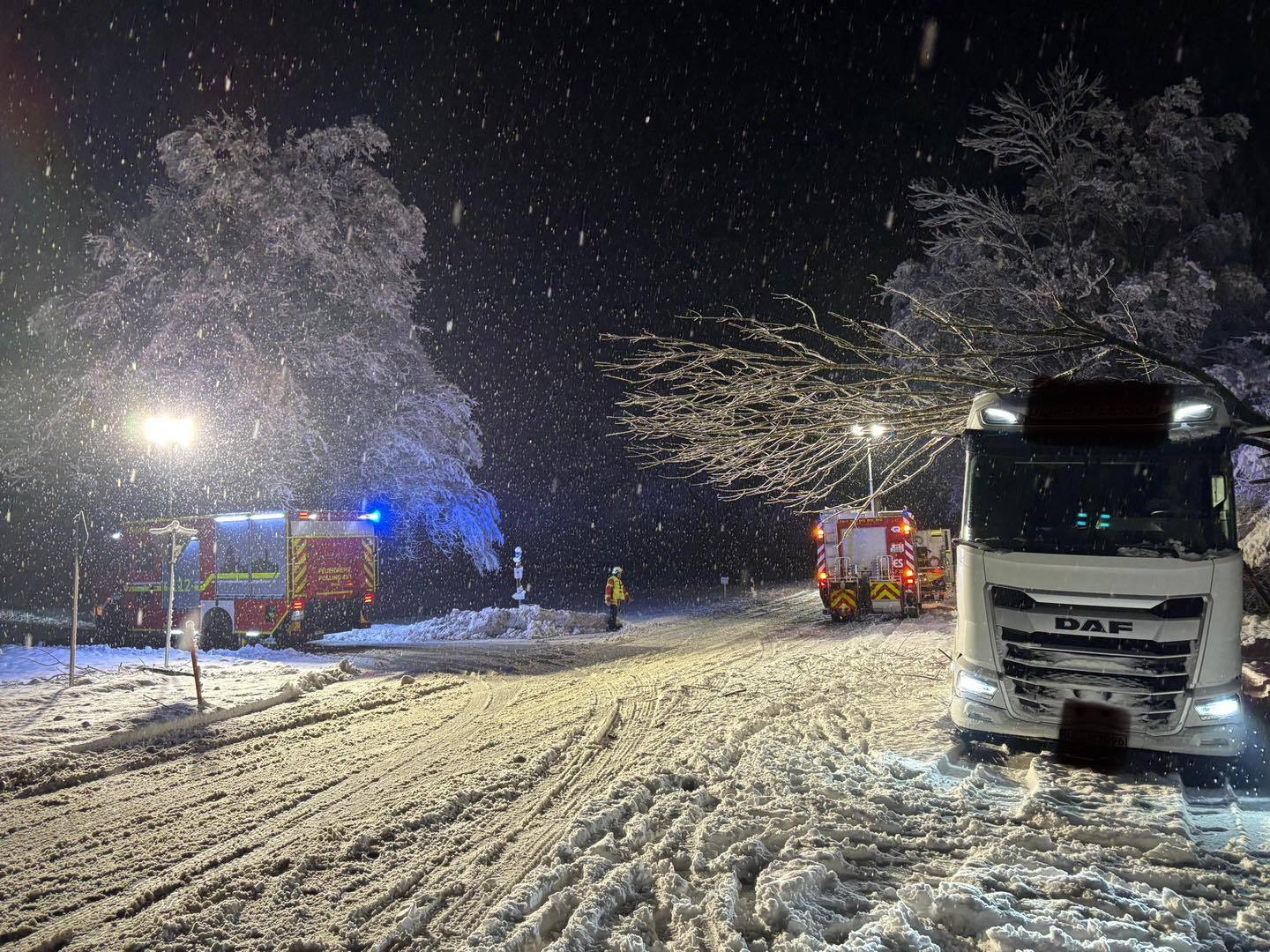 Wegen des starken Schneefalls hatte ein LKW-Fahrer die gute Idee, auf einem Parkplatz an der B472 zu warten. Was er nicht ahnte: Ein Baum hielt der Schneelast nicht stand, krachte direkt auf sein Auto – und schon war an Weiterfahrt nicht zu denken!