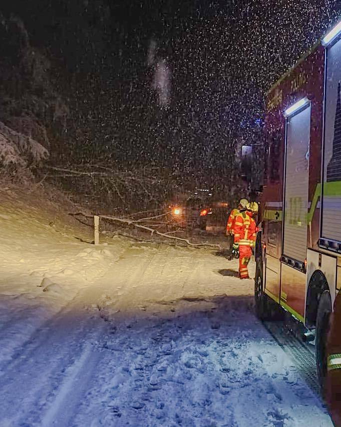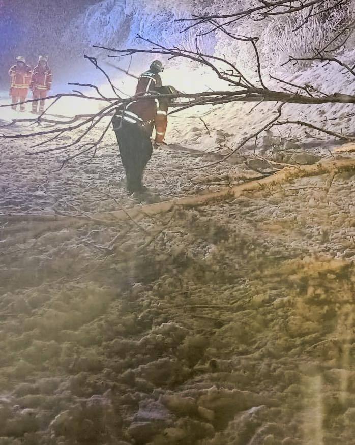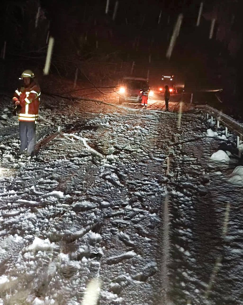 Nach den anhaltenden Schneefällen wurden wir in der Nacht zu einem technischen Hilfeleistungseinsatz alarmiert. Auf der B472 auf Höhe Talhausen blockierte ein umgestürzter Baum die Fahrbahn – mehrere Fahrzeuge konnten ihre Fahrt dadurch zunächst nicht fortsetzen.